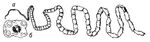 Рис. 1. Мозговик овечий: а — половозрелый червь; б — его головка (при большом увеличении).