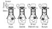 Рис. 1. Рабочий цикл 4-тактного карбюраторного двигателя.