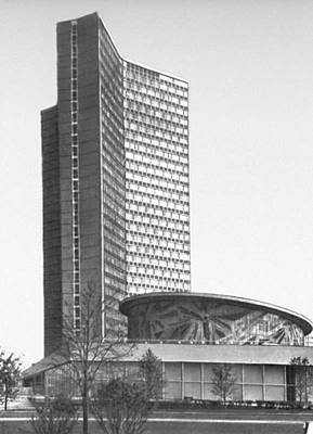 Здание Совета экономической взаимопомощи на проспекте Калинина. 1969. Архитекторы М. В. Посохин, А. А. Мндоянц, В. А. Свирский, инженеры Ю. В. Рацкевич, С. Я. Школьников и др.