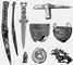 Тагарская культура: 1—2 — бронзовые ножи; 3 — бронзовый кинжал; 4 — бронзовый наконечник стрелы; 5 — бронзовый чекан; 6 — глиняный сосуд; 7 — бронзовый котёл; 8—9 — бронзовые бляшки.