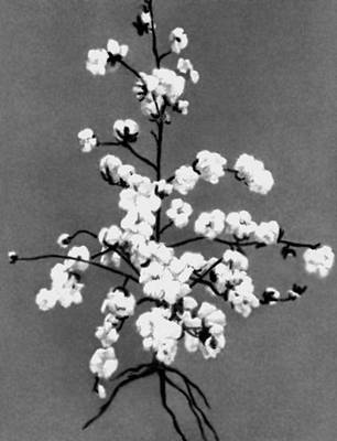 Куст хлопчатника с раскрытыми коробочками перед уборкой.