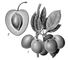 Алыча: 1 — ветка с плодами; 2 — продольный разрез плода.