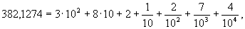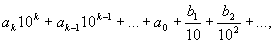 где ак, ak-1,..., a0, b1, b2,... — цифры 0, 1, 2,..., 9 (ak ¹ 0) в соответствующем разряде числа; например