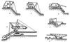 Ðèñ. 2. Ñõåìû ìíîãîêîâøîâûõ ýêñêàâàòîðîâ: à — íåïîâîðîòíûé öåïíîé íà æåëåçíîäîðîæíîì õîäó ñ áîêîâîé ðàçãðóçêîé; á — òî æå îäíîïîðòàëüíûé; â — ïîâîðîòíûé öåïíîé íà ãóñåíè÷íîì õîäó; ã — ðîòîðíûé; ä — öåïíîé, òðàíøåéíûé; å — öåïíîé îòâàëüíûé.