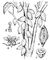 Плодоносящая теоброма какао; а — продольный разрез цветка; б — лепесток; в — плод в продольном разрезе; г — плод в поперечном разрезе.