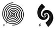 Рис. 1. Плоские спиральные антенны: а — архимедова спираль; б — логарифмическая спираль.