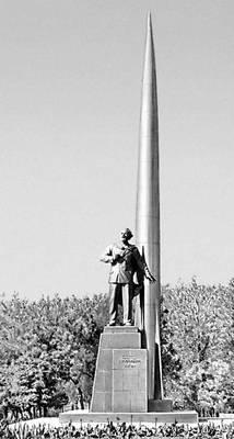 Памятник К. Э. Циолковскому. Бронза, сталь, гранит. 1958. Скульптор А. П. Файдыш, архитекторы М. О. Барщ, А. Н. Колчин.