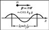 Рис. 1. Сопоставление волны и свободно движущейся частицы. Вверху показано прямолинейное движение частицы с массой m и импульсом p = mv (v — скорость частицы), внизу — распространение соответствующей ей «материальной волны» y0 ~ cos k0x с длиной волны l = h/p.