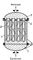 Рис. 1. Схема патронного фильтра: 1 — корпус; 2 — фильтровальная перегородка; 3 — крышка; 4 — решётка; 5 — откидное днище.