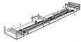 Рис. 5. Технологическая схема стендового производства предварительно напряжённых линейных изделий (стропильных балок): 1 — эстакада для подачи бетона; 2 — гидродомкрат; 3 — бетонораздатчик; 4 — самоходная тележка для вывоза готовых изделий; 5 — бухтодержатель.