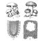 Àãàðèêîâûå: 1 — øàìïèíüîí (ïëàñòèí÷àòûé ãðèá); 2 — ðàçðåç ÷åðåç ïëàñòèí÷àòûé ãèìåíîôîð; 3 — áåëûé ãðèá (òðóá÷àòûé); 4 — ðàçðåç ÷åðåç òðóá÷àòûé ãèìåíîôîð.