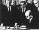Подписание Договора о запрещении испытаний ядерного оружия в атмосфере, в космосе и под водой государственным секретарём США Д. Раском. Москва. Кремль. 5 августа 1963.