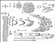 Схема развития дюн при различных режимах ветров. I. При равномерной системе ветров: 1 — кольцевая дюна; 2 — простая циркульная дюна; 3 — комплексная дюна; 4 — гипертрофированная циркульная дюна. II. При ветрах близких направлений: 5 — отвальная дюна; 6 — простая копьевидная дюна; 7 — комплексная копьевидная дюна. III. При преобладании ветров одного направления: 8 — дюнные прибереговые валы, поперечные ветрам; 9 — фестончатые дюнные валы; 10 — скобовидные дюны; 11 — серповидные дюны; 12 — простые параболические дюны; 13 — комплексные параболические дюны; 14 — гипертрофированные комплексные параболические дюны. IV. При ветрах одного направления: 15 — дугообразные дюны; 16 — шпильковидные дюны; 17 — дюнные гряды (чаще парные); 18 — комплексные грядовые дюны.