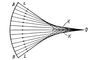 Вид каустической поверхности для оптической системы, имеющей сферическую аберрацию: AB — фронт световой волны после прохождения оптической системы, L — лучи света, К — каустика, PQ — отрезок прямой, в который при наличии сферической аберрации растягивается изображение точечного источника света (в безаберрационной системе точечный источник изображается точкой).
