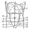 Живот: 1 — белая линия живота; 2 — левая подрёберная область; 3 — собственно надчревная область; 4 — левая боковая область; 5 — пупочная область; 6 — левая паховая область; 7 — лобковая область; 8 — паховые складки; 9 — правая паховая область; 10 — правая боковая область; 11 — правая подрёберная область.