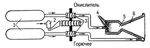 усугубляемому в некоторых случаях присутствием конденсированной фазы, представляет значительные трудности. Большинство камер охлаждается одним из компонентов топлива. Если при этом не удаётся охладить сопло и камеру до температуры, требуемой условиями прочности (при использовании всего топлива), то в слое газа, прилегающем к стенке, создают пониженную температуру путём обогащения пристеночного слоя одним из компонентов. Часто применяется смешанное охлаждение, т. е. наружное и внутреннее одновременно (рис. 3). Для защиты стенок камеры и сопла от нагрева одновременно с их охлаждением широко применяют теплозащитные покрытия. Сложной задачей является надёжность подачи топлива (криогенного, агрессивного и др.) при давлениях
