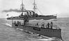 Русский крейсер и подводная лодка в Балтийском море. 1916.