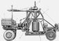 Копатель шахтных колодцев: 1 — вышка; 2 — бурильная штанга; 3 — бур; 4 — лебёдка для спуска и подъёма бура; 5 — двигатель внутреннего сгорания.