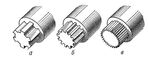 Рис. 1. Основные типы зубчатого соединения: а — прямобочное; б — эвольвентное; в — треугольное.
