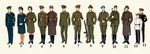 Форма одежды офицеров и прапорщиков Советской Армии с 1970: 1. Летняя парадно-выходная (прапорщик). 2. Летняя парадная для женщин. 3. Летняя полевая для женщин. Форма одежды сержантов, солдат и курсантов Советской Армии с 1970: 4. Летняя парадная. 5. Зимняя парадная. 6. Летняя парадно-выходная (курсант). 7. Летняя повседневная. 8. Летняя повседневная для жарких районов. 9. Летняя повседневная воздушнодесантных войск. 10. Летняя на особый период. 11. Зимняя на особый период. 12. Летняя повседневная № 1 суворовцев. 13. Летняя парадная суворовцев.