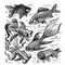 Аквариумные формы золотой рыбки: 1 — жемчужинка; 2 — золотая рыбка (родоначальник); 3 — телескоп; 4 — комета; 5 — водяные глазки; 6 — львиноголовка.