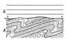 Среди складчатых форм нарушенного З. г. п. выделяются: односторонний наклон пластов под различными углами (моноклинальное залегание), изгибы пластов с образованием складок самых разнообразных размеров и форм (антиклинальные, синклинальные, прямые, косые, опрокинутые и др.). Среди разрывных нарушений выделяются крутопадающие нарушения, вызывающие разрыв сплошности пластов с движением прилегающих блоков пород в вертикальном, горизонтальном либо наклонном направлениях (сбросы, взбросы, сдвиги, раздвиги, надвиги). Крупные, пологонаклонённые или горизонтальные разрывы со смещением на десятки км носят название покровов или шарьяжей. К прорывающим формам З. г. п. в осадочных толщах относятся диапировые складки (складки «с протыкающим пластичным ядром») и складки, возникающие при внедрении магматических расплавов. При наличии разновозрастных комплексов слоев различают 2 основных типа З. г. п.: согласное залегание и несогласное залегание. Эти термины используются для определения стратиграфических и структурных взаимоотношений. Стратиграфическое согласное залегание характеризует непрерывность накопления пород; при стратиграфическом несогласии в осадочных, вулканогенных и метаморфических толщах выпадают отдельные стратиграфические подразделения (рис. 2). При структурном согласном залегании комплексы пород разного возраста залегают друг на друге параллельно и комплекс верхних слоев повторяет формы залегания нижних. При структурном несогласном залегании нижний и верхний комплексы залегают различно, причём основание верхнего комплекса перекрывает различные слои нижнего комплекса, обычно имеющие более крутые углы наклона (рис. 3). Размещение слоев на косо срезанной эрозионными процессами поверхности более древней толщи называется прислонённым залеганием или прилеганием, а заполнение впадин в древнем комплексе пород более молодыми слоями, отложенными быстро наступающим морем, — ингрессивным залеганием.