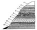Рис. 1. Горизонтальное залегание осадочных пород: 1 — белый мел; 2 — кварцевый песчаник; 3 — песчанистая глина; 4, 5, 6 — песчаник с различными прослоями; 7, 8, 9, 10 — известняк с прослоями гипса и др.; 11 — рухляки; 12 — оолитовый известняк.