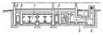 Рис. 1. Убежище в подвале здания: 1 — отсеки для укрываемых людей; 2 — тамбур; 3 — защитно-герметические двери; 4 — фильтро-вентиляционная установка; 5 — аварийный выход, используемый для забора воздуха.