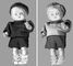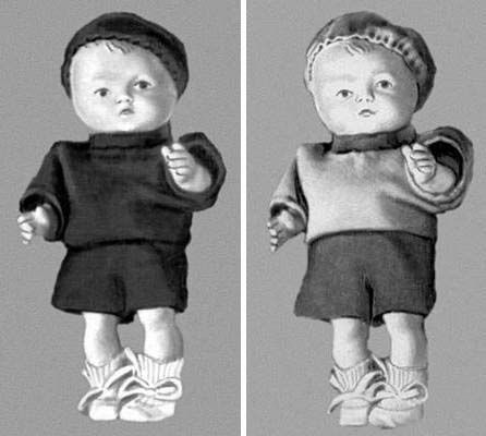 Фотография куклы, одетой в чёрное платье: слева — в видимом свете, справа — на инфракрасной фотографии. Различный цвет одежды на инфракрасной фотографии показывает, что она изготовлена из разных материалов, обладающих различной отражательной способностью для инфракрасного излучения.