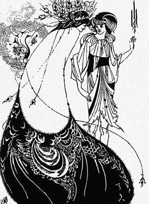 Символизм. О. Бёрдсли (Великобритания). «Павлинья юбка» (иллюстрация к «Саломее» О. Уайльда). Рисунок тушью. 1894.