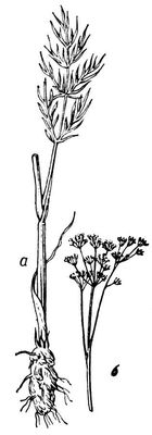 Муреция жёлтая: а — основание стебля; б — соцветие.