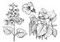 Катальпа бигнониевидная: а — ветка с цветками; б — цветок; в — ветка с плодами.