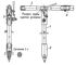 Ручной универсальный гидробур: 1 — вертикальная труба; 2 — гидромониторная головка; 3 — поперечная трубка (рукоятка); 4 — шланг от резервуара; 5 — клапан.