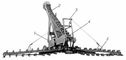 Самопередвижной скребковый зернопогрузчик: 1 — рама; 2 — скребковый транспортёр; 3 — скребковый питатель; 4 — привод; 5 — механизм подъёма питателя и транспортёра.