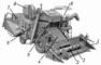 Комбайн (рис. 1) состоит из жатки, молотилки, копнителя, бункера, двигателя, кабины или площадки с органами управления и ходовой части; при раздельной уборке на жатке монтируют подборщик.