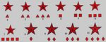 Знаки различия, введённые 3 декабря 1935 (петлицы и нарукавные знаки. Цвет поля петлиц и канта — по роду войск): 1. Маршал Советского Союза. 2. Комкор (пехота). 3. Комдив (автобронетанковые войска).