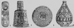 1. Пайцза серебряная, выданная золотоордынским ханом Абдуллой (1362—69). 2. Мраморный подсвечник с арабской надписью. Сделан в Египте. 14 в. 3. Чаша глиняная с подглазурной росписью и изображением утки. 4. Сосуд глиняный с подглазурной росписью. (Вещи, изображенные на рис. 2, 3, 4, найдены при раскопках городища Сарай-Берке в 40-х гг. 19 в.).