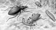 Жужелицы: 1 — чёрная (Carabus coriaceus); 2 — хлебная (Zabrus tenebrioides); 3 — личинка хлебной; 4 — зернистая (Carabus granulatus).