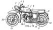 Схема устройства мотоцикла: 1 — передняя вилка; 2 — центральный переключатель (замок зажигания); 3 — спидометр; 4 — рычаг привода переднего тормоза; 5 — рукоятка управления карбюратором; 6 — рычаг выключения сцепления; 7 — топливный бак; 8 — карбюратор; 9 — амортизатор задней вилки; 10 — глушитель; 11 — задняя вилка; 12 — цепь задней передачи; 13 — педаль переключения передач; 14 — сцепление; 15 — цепь передней передачи; 16 — коленчатый вал; 17 — поршень; 18 — цилиндр; 19 — тормозная колодка; 20 — ступица.