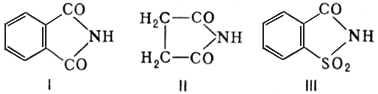 Имиды кислот, соединения, содержащие два ацильных остатка, связанных с группой NH. Известны линейные и циклические И. к. Наибольшее значение имеют последние — производные двухосновных кислот, например фталимид (I, tпл 233,5—238 °С), сукцинимид (II, tпл 125—127 °С), имид о-сульфобензойной кислоты (III, сахарин, tпл 226—230 °С):