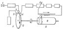 Схема прибора видимой речи регистрирующего типа: 1 — микрофон: 2 — барабан с ферромагнитным слоем на боковой поверхности; 3 — записывающая головка; 4 — воспроизводящая головка; 5 — стирающая головка; 6 — полосной фильтр; 7 — записывающее устройство; 8 — барабан.