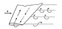 Рис. 2. Разрез потока за крылом плоскостью, перпендикулярной v. Течение воздуха у торцов вызывает систему свободных вихрей.