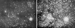 Фотографии участка неба: слева — в видимом излучении, справа — в инфракрасном излучении. На фотографии слева большая часть звезд не видна, т.к. они закрыты туманностью, непрозрачной для видимого излучения. Для инфракрасного излучения туманность прозрачна и потому на фотографии справа видно большое число «инфракрасных» звёзд.