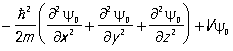 Стационарное уравнение Шрёдингера. Волны де Бройля описывают состояние частицы только в случае свободного движения. Если на частицу действует поле сил с потенциальной энергией V (называемой также потенциалом), зависящей от координат частицы, то волновая функция частицы y определяется дифференциальным уравнением, которое получается путём следующего обобщения гипотезы де Бройля. Для случая, когда движение частицы с заданной энергией E происходит в одном измерении (вдоль оси х), уравнение,. которому удовлетворяет волна де Бройля (5), может быть записано в виде:
