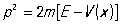 — импульс свободно движущейся частицы (массы m). Если частица с энергией E движется в потенциальном поле V (x), не зависящем от времени, то квадрат её импульса (определяемый законом сохранения энергии) равен