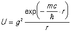 Если применить эту формулу к случаю, когда переносчиками взаимодействия являются кванты электромагнитного поля — фотоны, масса покоя которых m = 0, и учесть, что вместо g должен стоять электрический заряд е, то получится хорошо известная энергия кулоновского взаимодействия двух зарядов: Uэл = е2/r.
