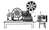 Комплект кинопередвижки «Украина» в рабочем состоянии: 1 — кинопроекционный аппарат; 2 — усилитель электрических сигналов; 3 — громкоговорящее устройство; 4 — автотрансформатор. Кинопроекционный экран не показан.