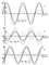 Рис. 1. Сложение 2 гармонических колебаний (пунктир) с амплитудами A1 и А2 при различных разностях фаз. Результирующее колебание — сплошная линия.