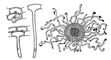 Корневые волоски: 1 — последовательные стадии образования корневых волосков; 2 — поперечный разрез корня с корневыми волосками.