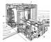 Рис. 2. Здание вертикальной сборки ракет: 1 — высотная часть; 2 — малый пролёт; 3 — здание командного пункта; 4 — собранная ракета-носитель; 5 — кабель-заправочная башня; 6 — гусеничный транспортёр; 7 — вторые ступени ракеты; 8 — третья ступень ракеты (в процессе проверки); 9 — космический объект.